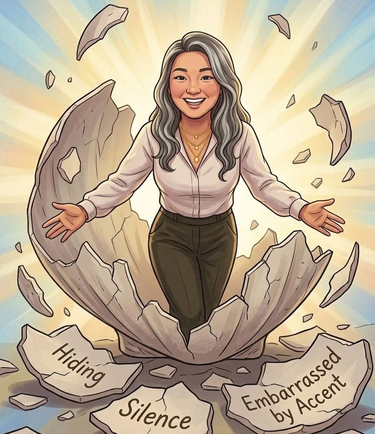I saw a Japanese lady giving a presentation. She completely captivated the room. She spoke with a heavy accent, yet she was incredibly eloquent, powerful, and profound. Watching her, it hit me like a ton of bricks: It is not about the accent. It is about confidence. It’s about how you choose to show up. My perceived "flaw" wasn't the problem. My refusal to accept myself was.